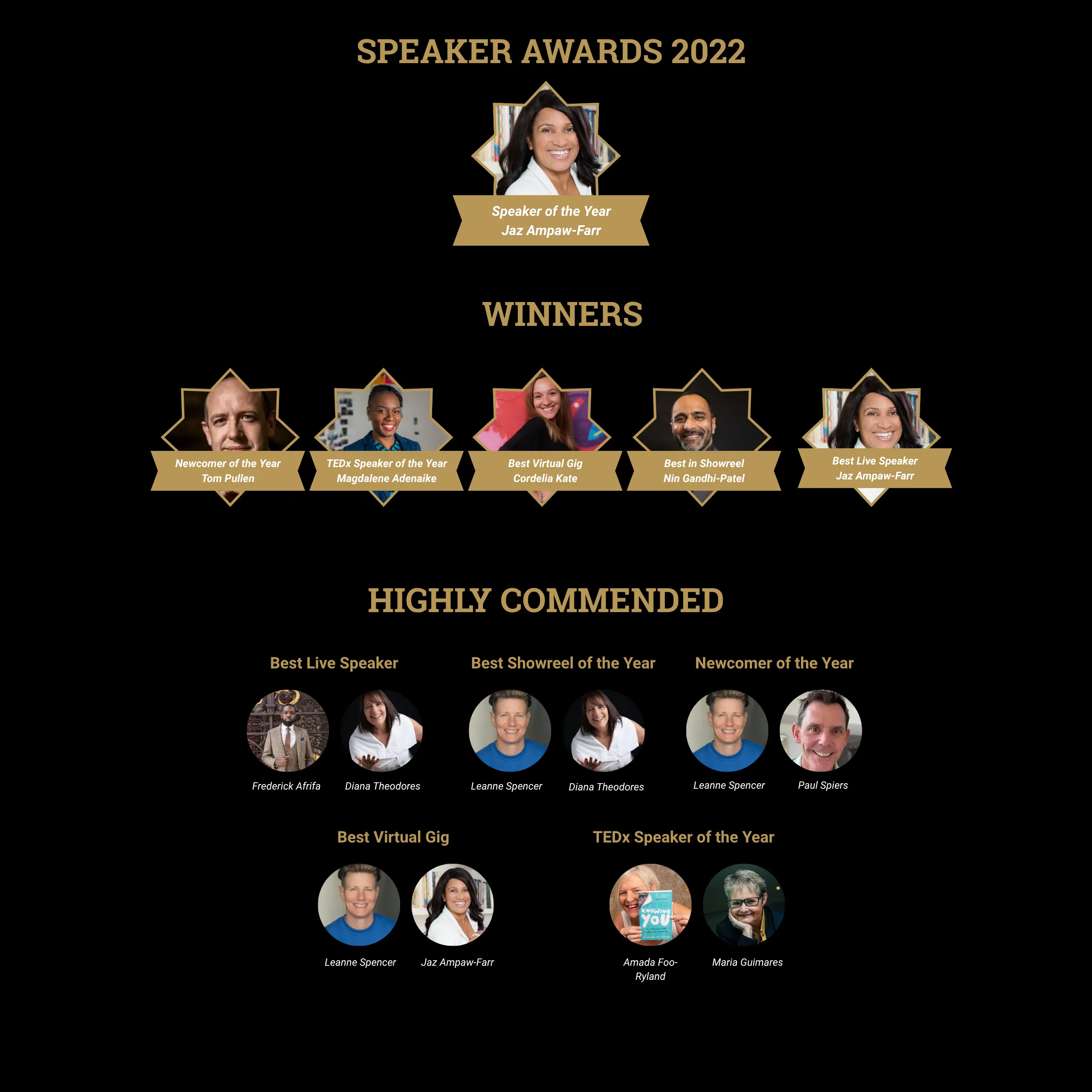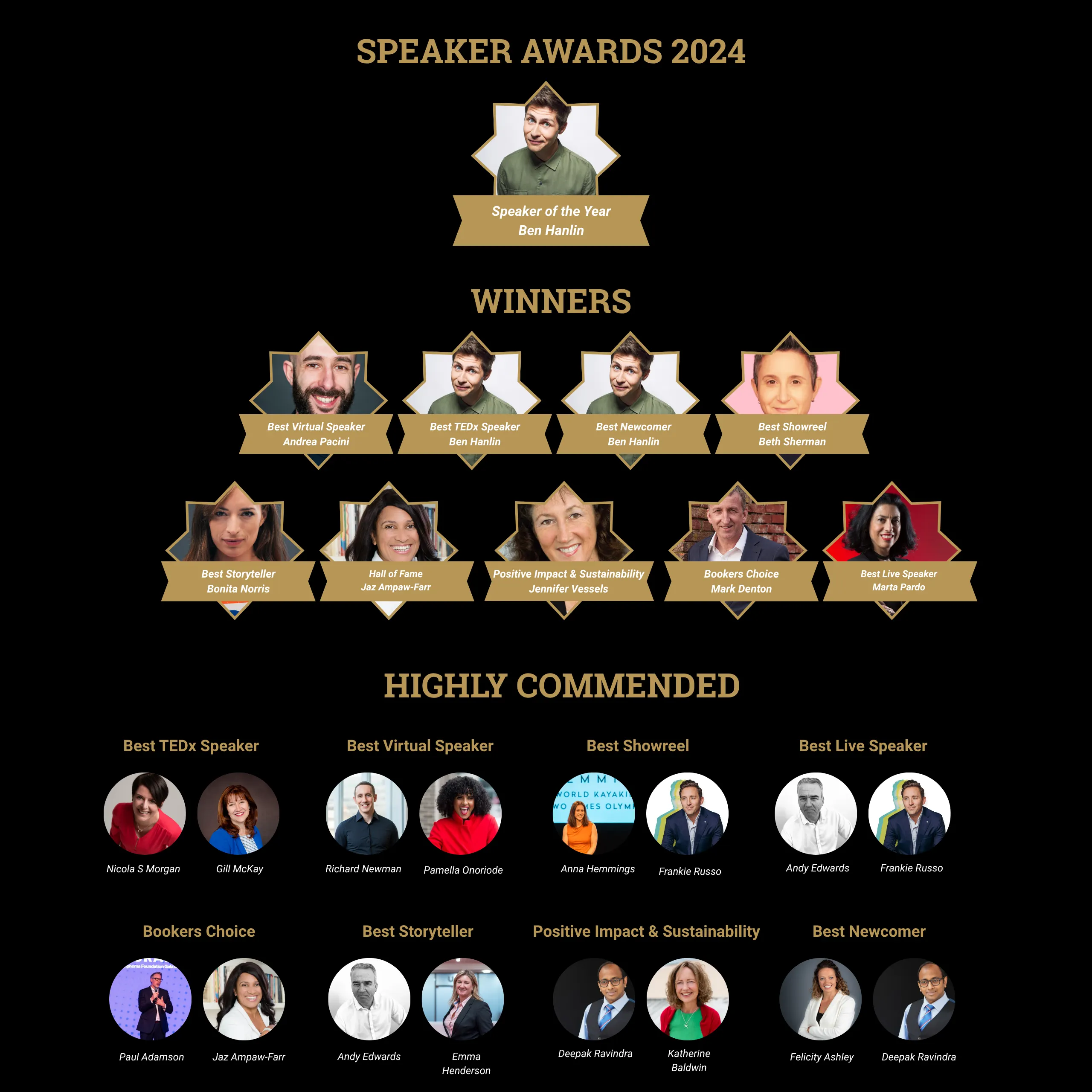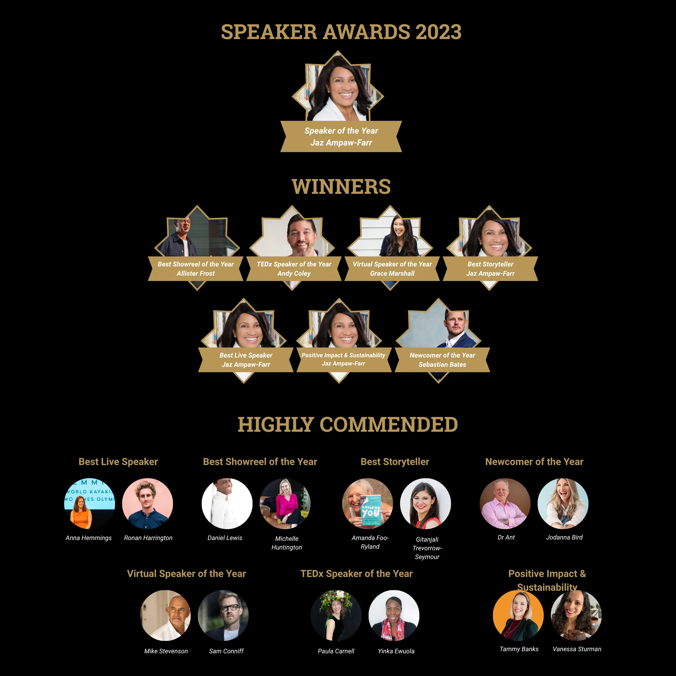 Speaker of the Year is selected from the winners and highly commended speakers across all categories.